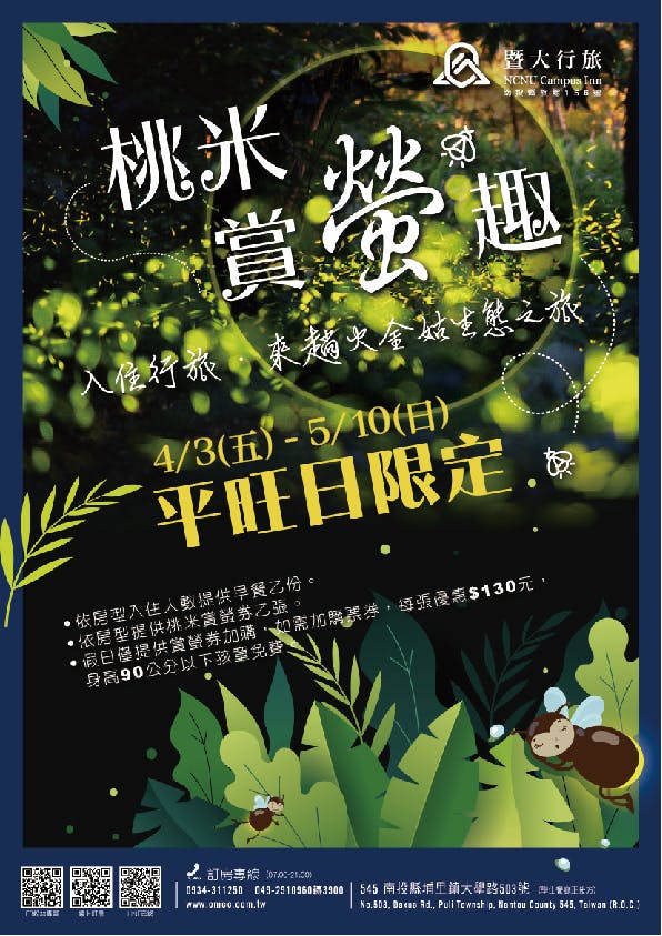 ◆入住暨大行旅,來一趟火金姑生態之旅吧~點這裡訂房:https://reurl.cc/YDlGXl